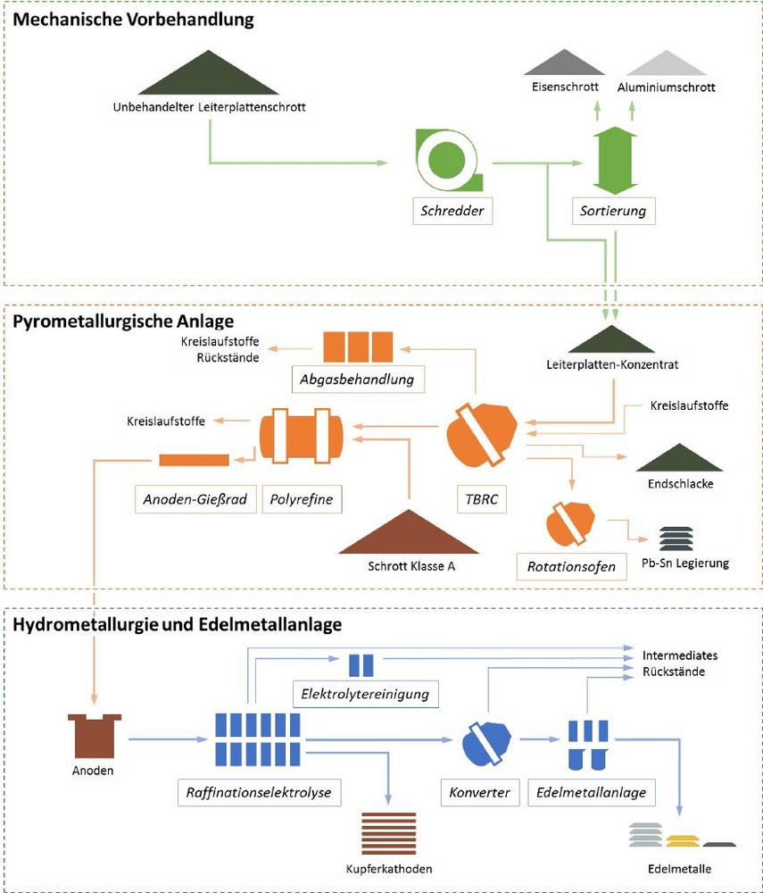 Die Anlage wird circa 6.000 Jahrestonnen Leiterplatten verarbeiten. Hergestellt werden metallisches hochreines Kupfer, Nickel, Gold, Silber und Platin.