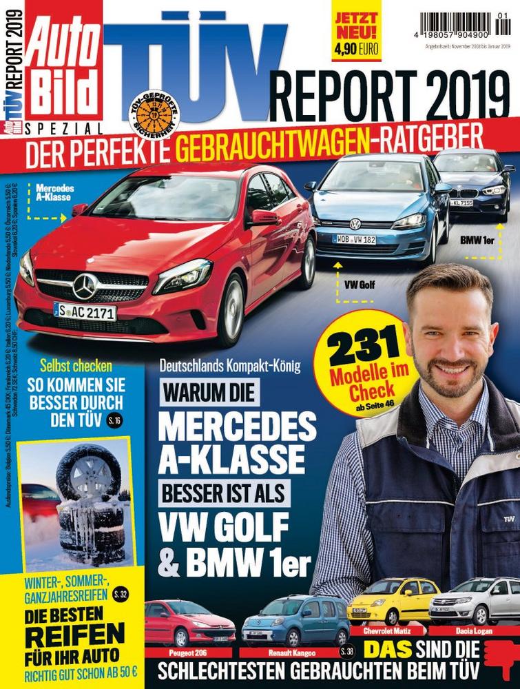 Info: Der TÜV Report 2019 ist ab Freitag, 9. November 2018, zum Preis von 4,90 Euro in den TÜV SÜD Service-Centern und im Handel erhältlich.