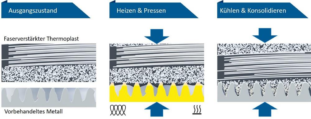 Das thermische Direktfügen stellt einen innovativen Ansatz zur Herstellung von Metall-Kunststoff-Verbindungen dar, bei dem Metall und Kunststoff lokal erwärmt und vergleichbar zu einem Schweißprozess gefügt werden. Die erwarteten Vorteile des thermischen Direktfügens sind kurze Taktzeiten, umfangreiche Möglichkeiten in der Prozessüberwachung und eine hohe Chance für die Automatisierung von Produktionsprozessen und liefert damit viele Ansätze zur Steigerung der Wirtschaftlichkeit. Zusätzlich erlaubt das thermische Direktfügen aufgrund des möglichen Reverse-Prozesses bzw. „Entfügens“ auch die Entwicklung innovativer Reparaturkonzepte und eine sortenreine Materialtrennung am Lebensende des Bauteils. Dadurch erfüllt das thermische Direktfügen im Gegensatz zu den meisten Alternativen im Multi-Material-Leichtbau die Anforderungen der Europäischen Union zur sicheren Integration in Kreislaufwirtschaftskonzepte. Das thermische Direktfügen hat damit ein großes Potenzial, sich zu zukünftig zu einem etablierten Fügeverfahren für Metall-Kunststoff-Verbindungen zu entwickeln, das sowohl in der Serien- als auch in der Einzelteilfertigung nutzbar ist.