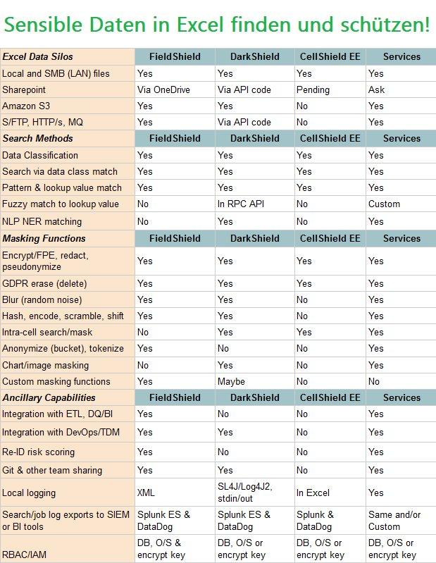 Jedes dieser Tools kann auch persönlich identifizierbare/geschützte Gesundheitsinformationen (PII/PHI) und andere sensible Daten in MS Excel-Tabellen finden und maskieren. Die Tools unterscheiden sich jedoch in der Excel-Bedienung und der Job-Konfiguration, so dass es wichtig ist, zu wissen, welche(s) Tool(s) in welcher Situation verwendet werden soll(en).