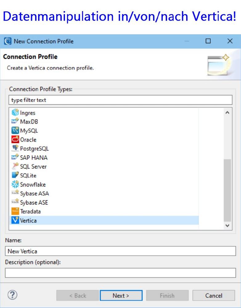 End-to-End Datenmanagement: Wie andere Artikel in unserem Blog über die Verbindung und Konfiguration von relationalen Datenbanken mit der IRI Voracity Datenmanagement-Plattform beschreibt dieser Artikel detailliert, wie man Vertica-Quellen erreicht.