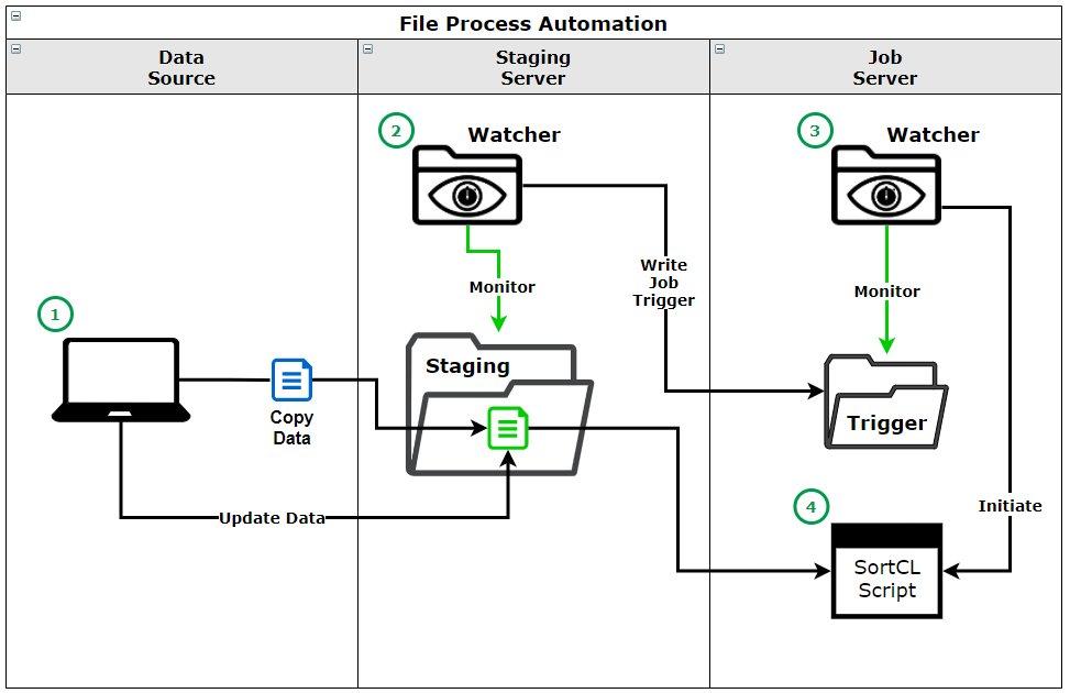 In diesem Beitrag zeigen wir ein Proof of Concept (POC), das automatisch ein vorhandenes SortCL-kompatibles Jobskript auf der Grundlage des Dateinamens ausführt, wenn eine neue Datei erstellt wird oder Daten in einer vorhandenen Datei hinzugefügt oder geändert werden.