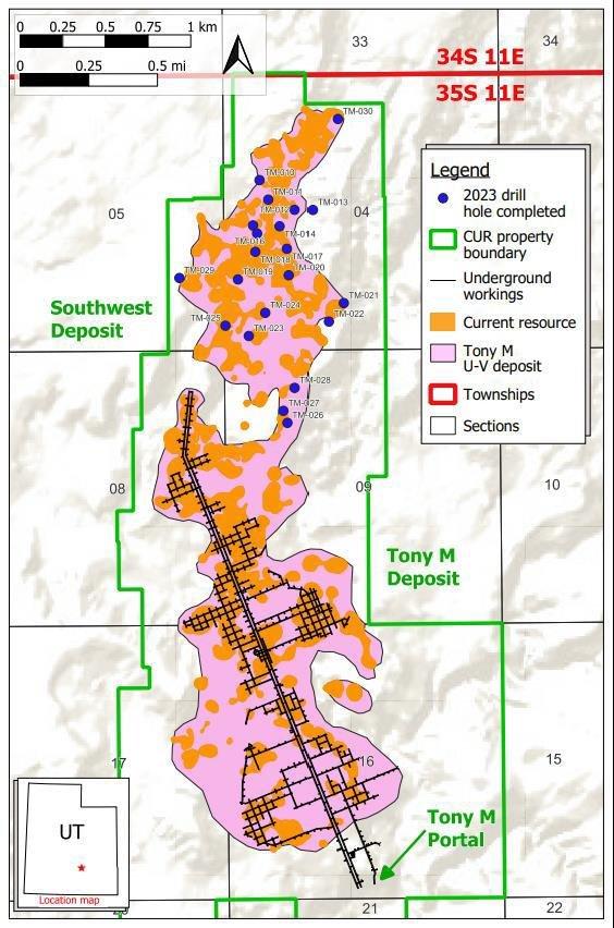 Consolidated Uranium Inc. ("CUR", das "Unternehmen", "Consolidated Uranium") (TSXV: CUR) (OTCQX: CURUF) – https://www.commodity-tv.com/ondemand/companies/profil/consolidated-uranium-inc/freut sich, den Abschluss der ersten Phase der Bohrungen in der zu 100 % unternehmenseigenen Uranmine Tony M ("Tony M") im Südosten von Utah bekannt zu geben, wie bereits in einer Pressemitteilung vom 28. Juni 2023 angekündigt. Tony M ist eine von drei Uranminen in Utah, die in der Vergangenheit produziert haben und sich im Besitz von CUR befinden. Es handelt sich um eine groß angelegte, vollständig erschlossene und genehmigte Untertagemine, die in der Vergangenheit in zwei verschiedenen Betriebszeiträumen (1979-1984 und 2007-2008) fast eine Million Pfund U3O8 produziert hat.