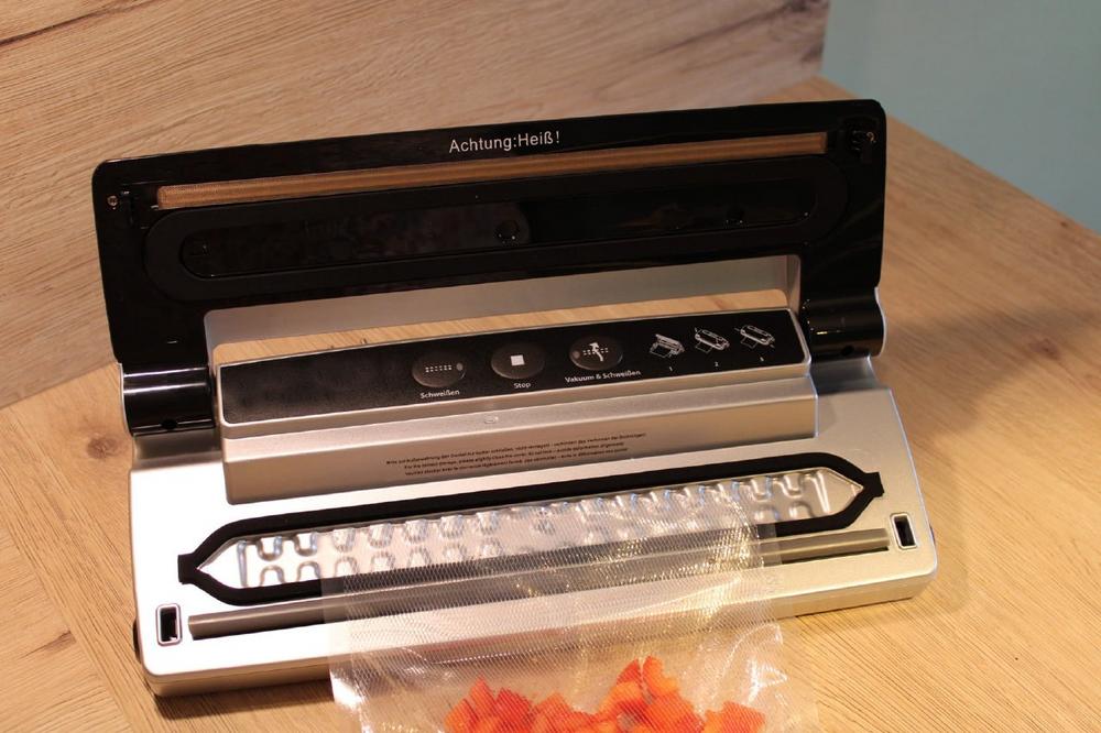 Eine Schweißnaht, die dicht hält, ist essenziell für die Haltbarmachung der Lebensmittel. Dafür sollte sie besonders breit und stabil sein. Arbeitet das Gerät beim Zuschweißen zuverlässig, reicht eine einfache Schweißnaht aus. Ist jedoch beim Befüllen etwas auf den Beutel gekleckert, wird die Schweißnaht an dieser Stelle nicht halten. Vakuumierer, die zwei oder drei Schweißnähte hintereinander anbringen, verzeihen solche Anfängerfehler eher. Bei Modellen, die nur einen Schweißdraht haben, können Nutzer den Beutel auch etwas herausziehen und manuell eine zweite Schweißnaht anbringen.