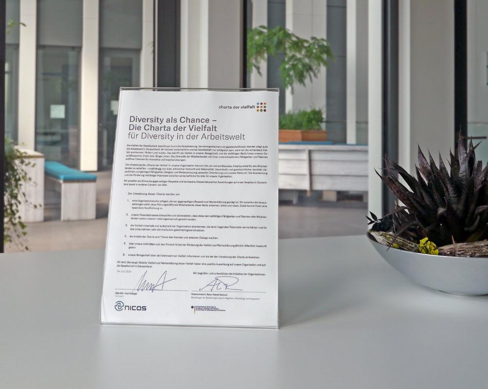 Mit der Unterzeichnung der Charta der Vielfalt setzt die nicos AG ein klares Zeichen für Vielfalt und Toleranz in der Arbeitswelt und signalisiert die Wertschätzung aller Mitarbeitenden unabhängig von Alter, ethnischer Herkunft und Nationalität, Geschlecht und geschlechtlicher Identität sowie körperlichen Fähigkeiten, Religion und Weltanschauung, sexueller Orientierung und sozialer Herkunft.