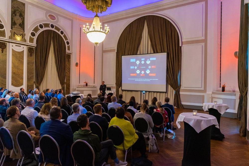 Im anschließenden Hauptteil des Events zeigte assono, wie Chatbot-Lösungen konkret aussehen können und welchen Mehrwert diese für Unternehmen und Verwaltungen bringen. In seinem Vortrag erläuterte Thomas Bahn den Ansatz des assono KI-Chatbots und stellte verschiedene Kundenprojekte vor, die erfolgreich auf diese KI-Lösung setzen. Gute KI-Chatbots können nämlich viel mehr als nur FAQs beantworten: Durch den Einsatz weiterer KI-Technologien und die Anbindung an unternehmensinterne Systeme sind sie in der Lage, Prozesse abzubilden und Aufgaben zu automatisieren. Ein Beispiel dafür ist die Stadt Bad Oeynhausen, die über ihren Chatbot sowohl die Hundebestandsaufnahme als auch die Beantwortung steuerlicher Fragen abbilden konnte.