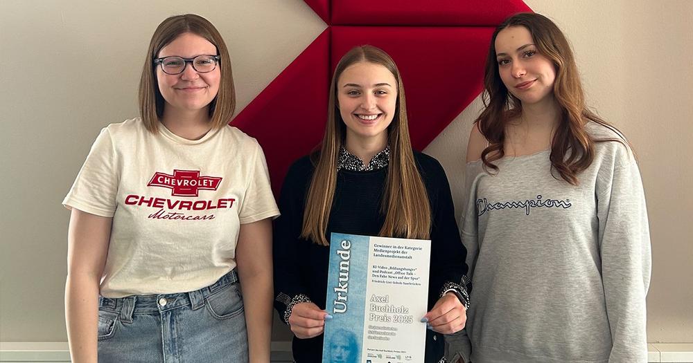 Der von Hannah, Helena, Leonie und ihren Mitschülerinnen kreierte Aufklärungssong zum Thema KI wurde nicht nur ausgezeichnet, sondern wird seitens des SR auch zu Aufklärungszwecken immer wieder ausgestrahlt – ein Erfolg auf ganzer Linie, zu dem eurodata seinen Auszubildenden herzlich gratuliert.