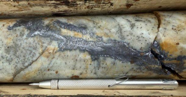 – Die ersten Bohrungen durchteuften Quarzit und Dolomit mit Gangschwärmen, die Pyrit, Arsenopyrit, Quarz, Ankerit und Bleiglanz enthalten.
