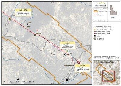 Metallis Resources Inc. (TSXV: MTS) (OTCQB: MTLFF) (das „Unternehmen“ oder „Metallis“) freut sich, ein Update zu seiner Diamantkernbohrkampagne 2025 (das „Programm“) im Konzessionsgebiet Greyhound (das „Greyhound“ oder „Konzessionsgebiet“) im Zentrum von Idaho (USA) bereitzustellen. Bislang wurden sieben Bohrungen mit einer Gesamtlänge von 1.143 Metern fertiggestellt. Die Bohrarbeiten sind jetzt im letzten Zielgebiet bei Birdie im Gange (siehe Karte 1). Das Konzessionsgebiet beherbergt zahlreiche historische Abbaustätten und bietet ein erhebliches unerschlossenes Explorationspotenzial. In diesem Jahr werden diese Ziele zum ersten Mal mittels Bohrungen überprüft.