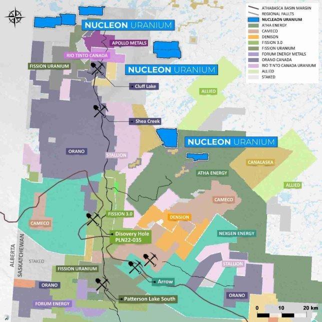 • Grenzen an aktive Explorations- und Erschließungsprojekte der Unternehmen Atha Energy Corp. und Denison Mines, sodass Nucleon in einem hochaktiven Uranexplorationsgürtel liegt.