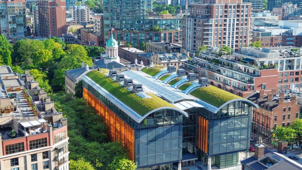 Mit der Dachbegrünung wird die Stadt Toronto ihren Nachhaltigkeitszielen gerecht und schafft ein imposantes Stück Grünfläche mitten in der Stadt, das nicht nur Lebensraum für viele Tier- und Pflanzenarten ist, sondern eine echte optische Aufwertung des Stadtbildes darstellt.